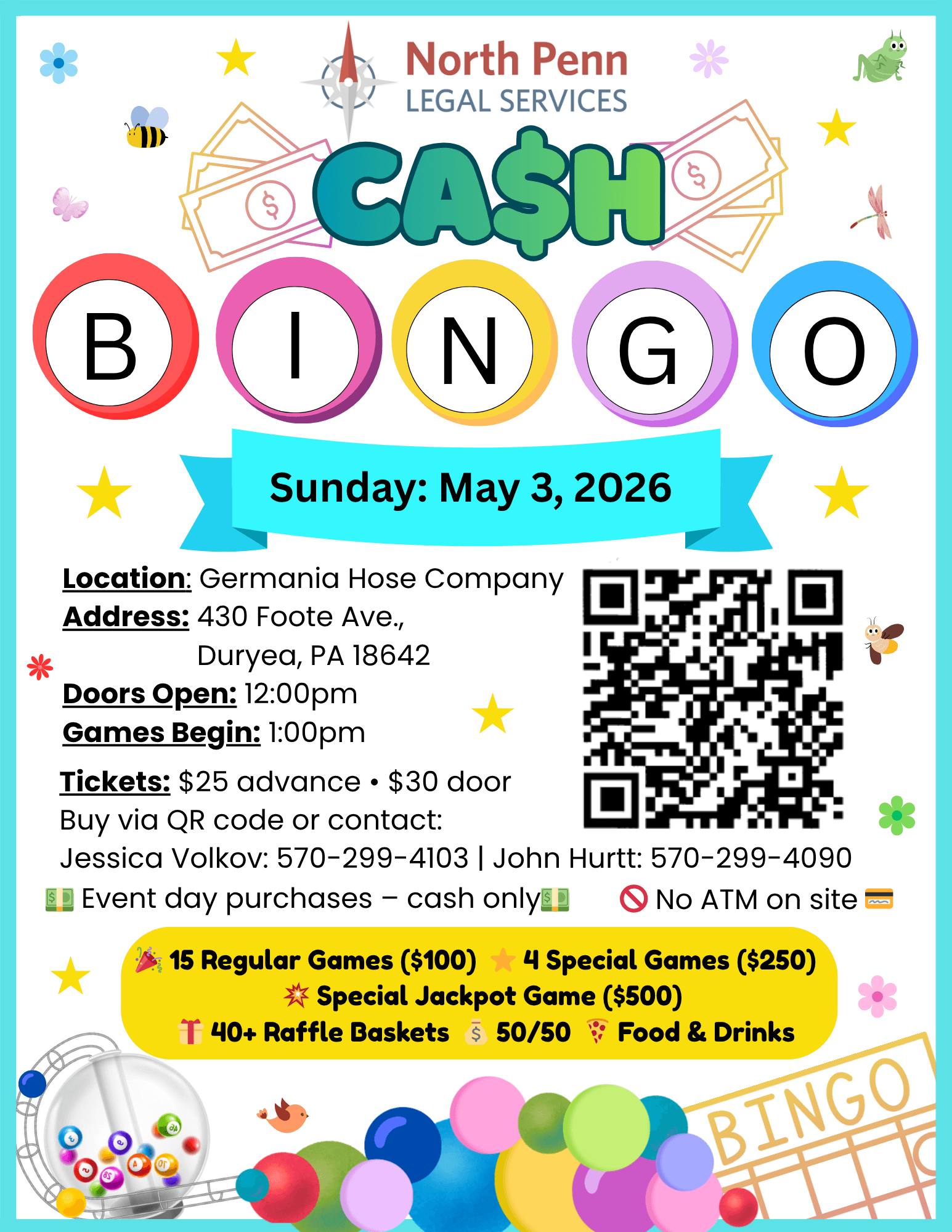 Join us for a cash bingo event to support North Penn Legal Services, bringing free civil-legal services to low-income people in Northeast PA.